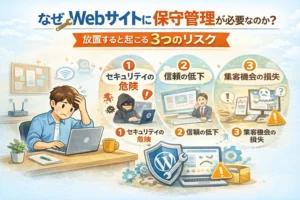 WordPressは非常に優れた仕組みである反面、定期的な更新やセキュリティ対策を行わなければ、表示崩れや不具合、そして外的セキュリティリスクが発生します。